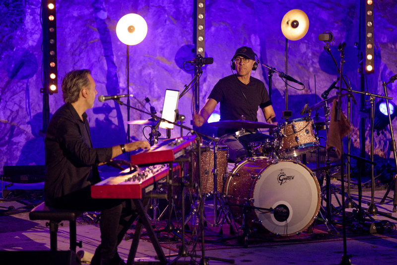 Jean-Philippe Fanfant à la batterie, joue pour l’occasion sur une Gretsch Renown finition Champagne Sparkle.